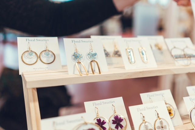 Flora is preserved then embedded in resin to create nature inspired jewelry. Fresh flora is imprinted in clay to produce plaster relief art using natural pigment.
